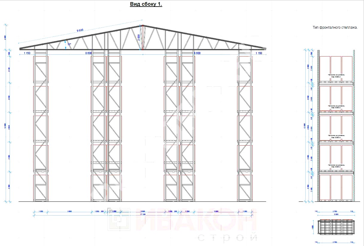 - Самонесущие склады обычно проектируются на базе фронтальных , так как они обладают большой нагрузочной способностью до 21 тонны на стойку